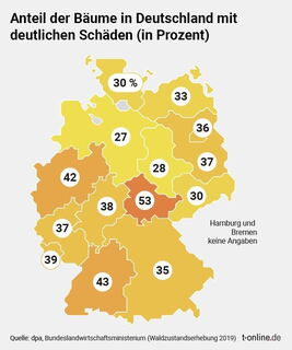Nun gehen solche staubtrockenen Zahlen leider den Gang, den alle staubtrockenen Zahlen gehen: zum einen Ohr hinein, zum anderen hinaus. Das ist menschlich, aber es ist nicht gut. Denn sie dokumentieren eine Entwicklung, die man mit Fug und Recht dramatisch nennen kann: Nahezu überall in unserem schönen Land verfällt der Wald, binnen Monaten und Jahren verwandelt sich dichtes Grün in Ödnis. Der Anteil von Bäumen mit "deutlichen Kronenverlichtungen" ist dem Landwirtschaftsministerium zufolge auf 36 Prozent gestiegen, also mehr als ein Drittel. Um den Rest steht es kaum besser: Nur noch rund ein Fünftel aller Bäume in Deutschland hat eine intakte Krone.